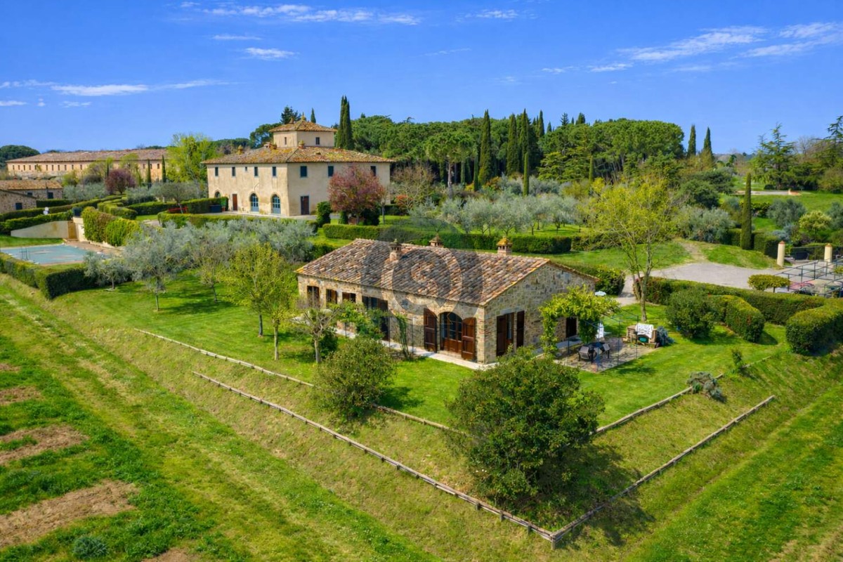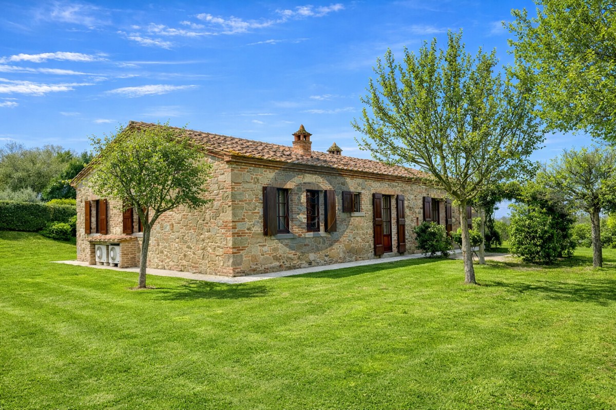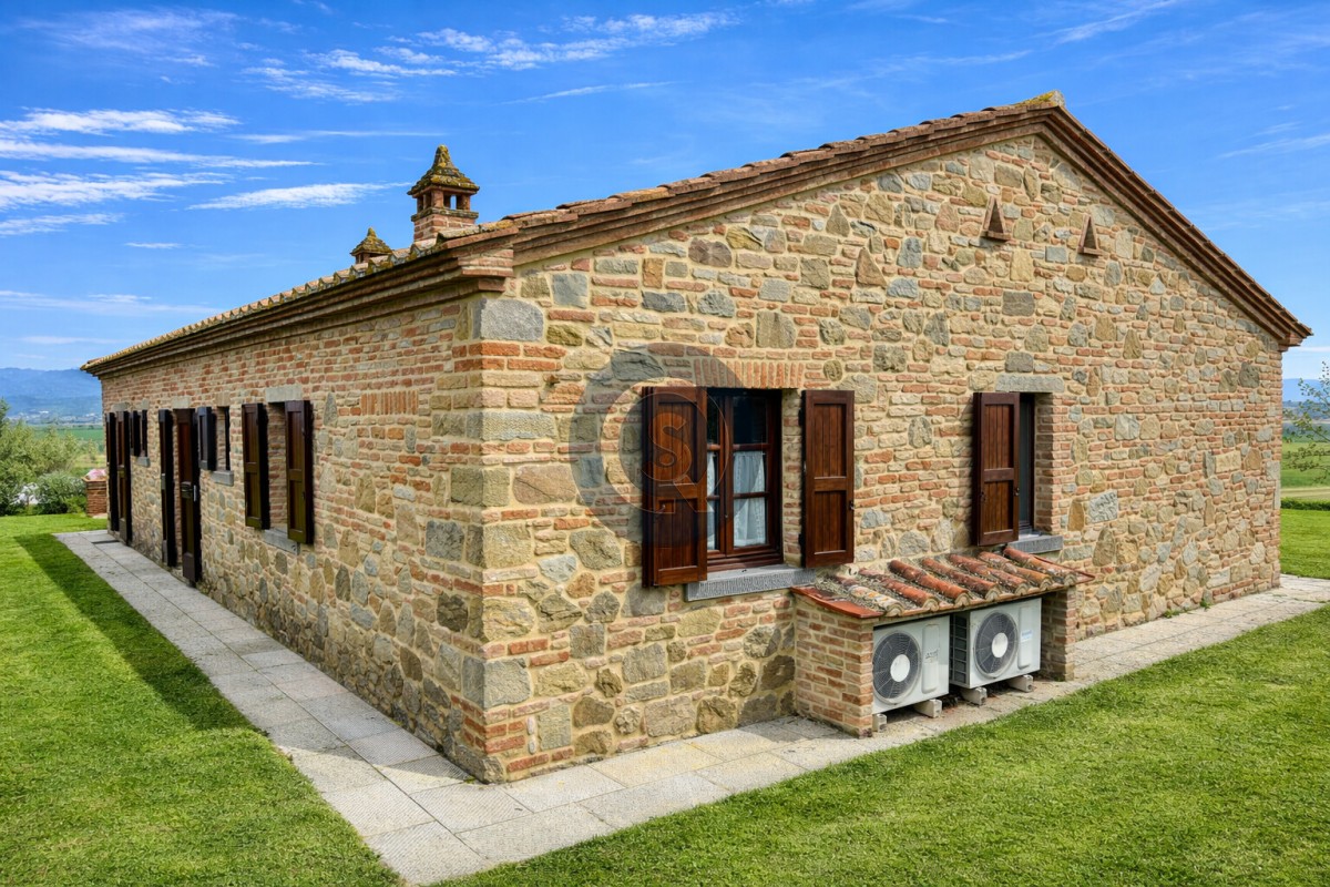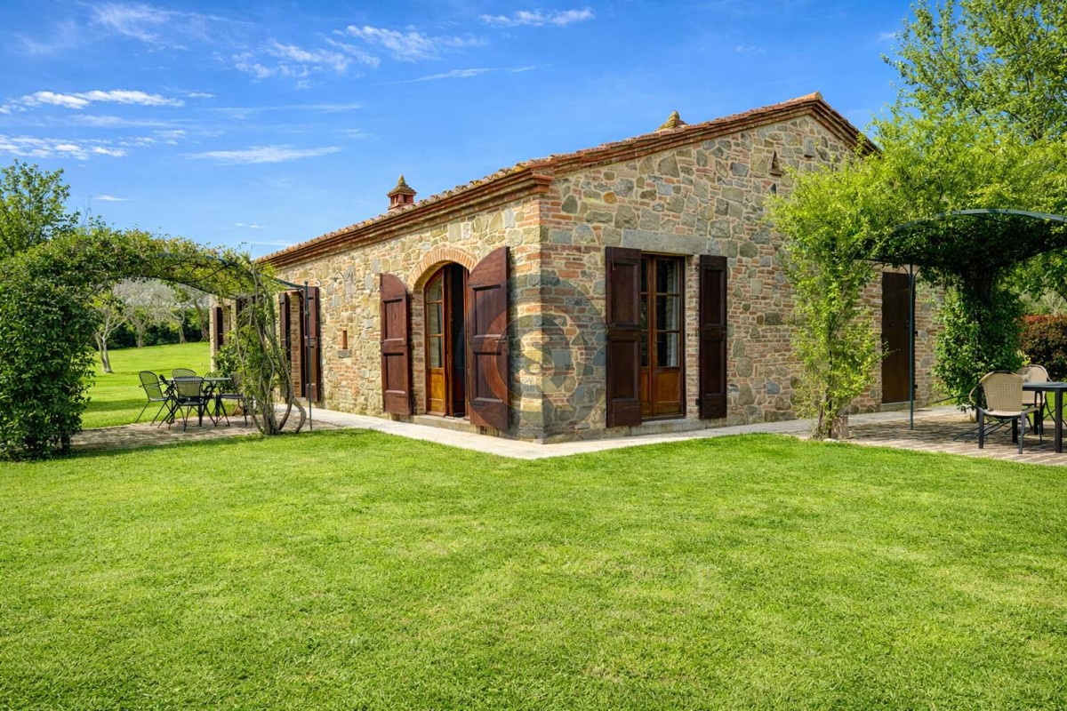 Nestled in the heart of the Tuscan countryside, close to the charming towns of Castiglion Fiorentino and Cortona, lies a magnificent property known as Villa la Leopoldina. Among its unique features is a beautifully restored stone building called Casale H, a 194 sqm independent villa constructed with traditional local materials, showcasing authentic Tuscan craftsmanship.