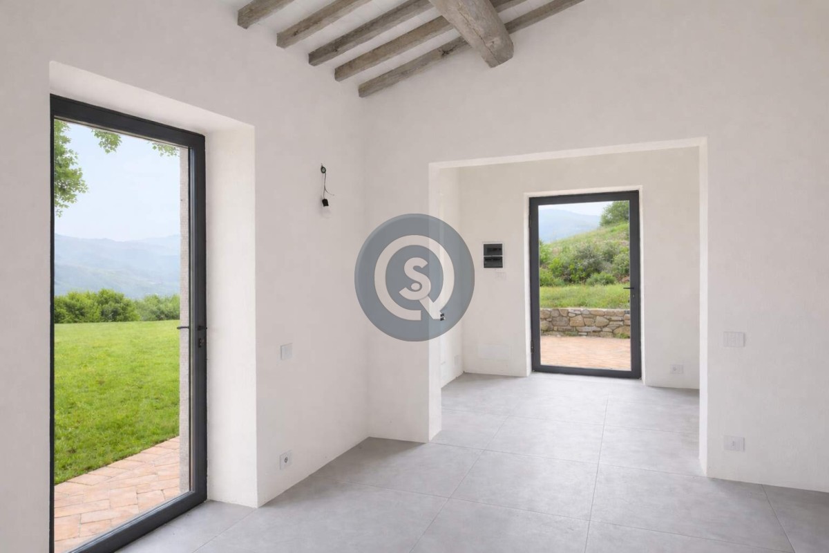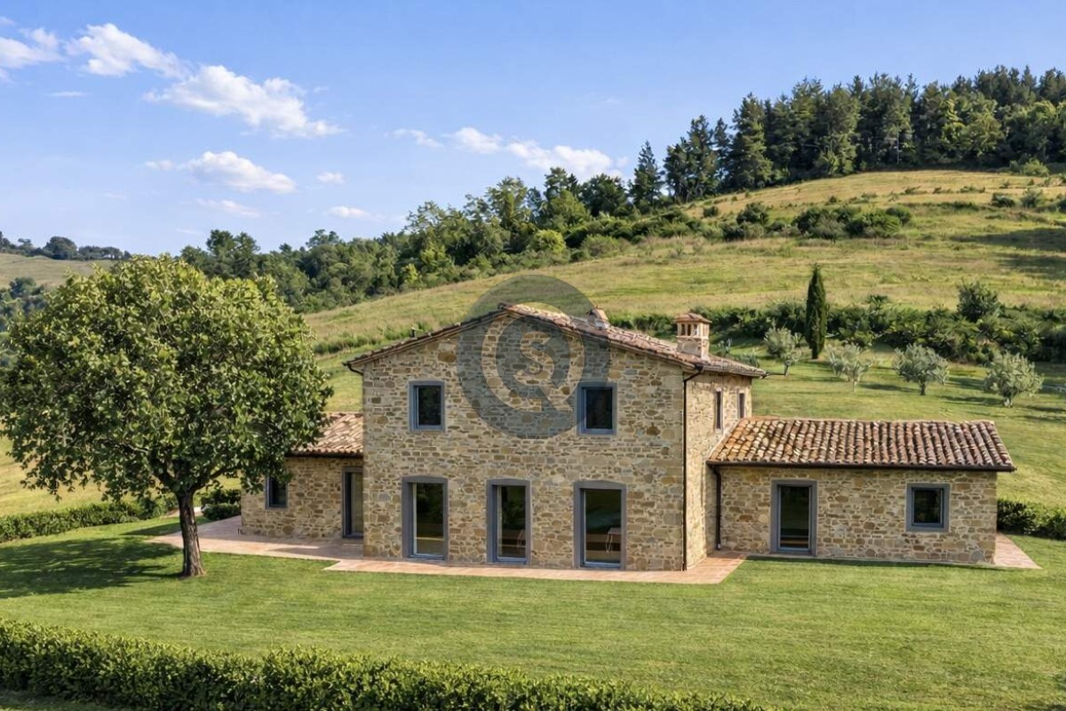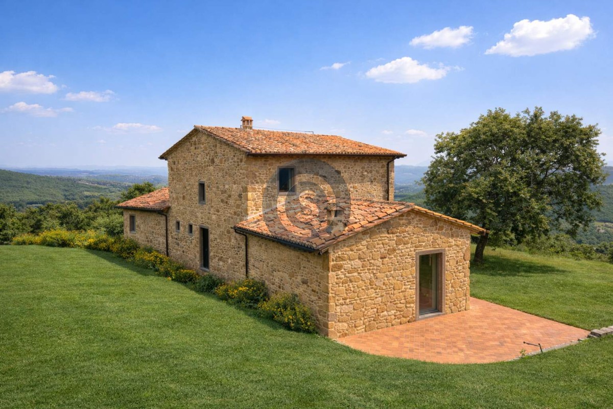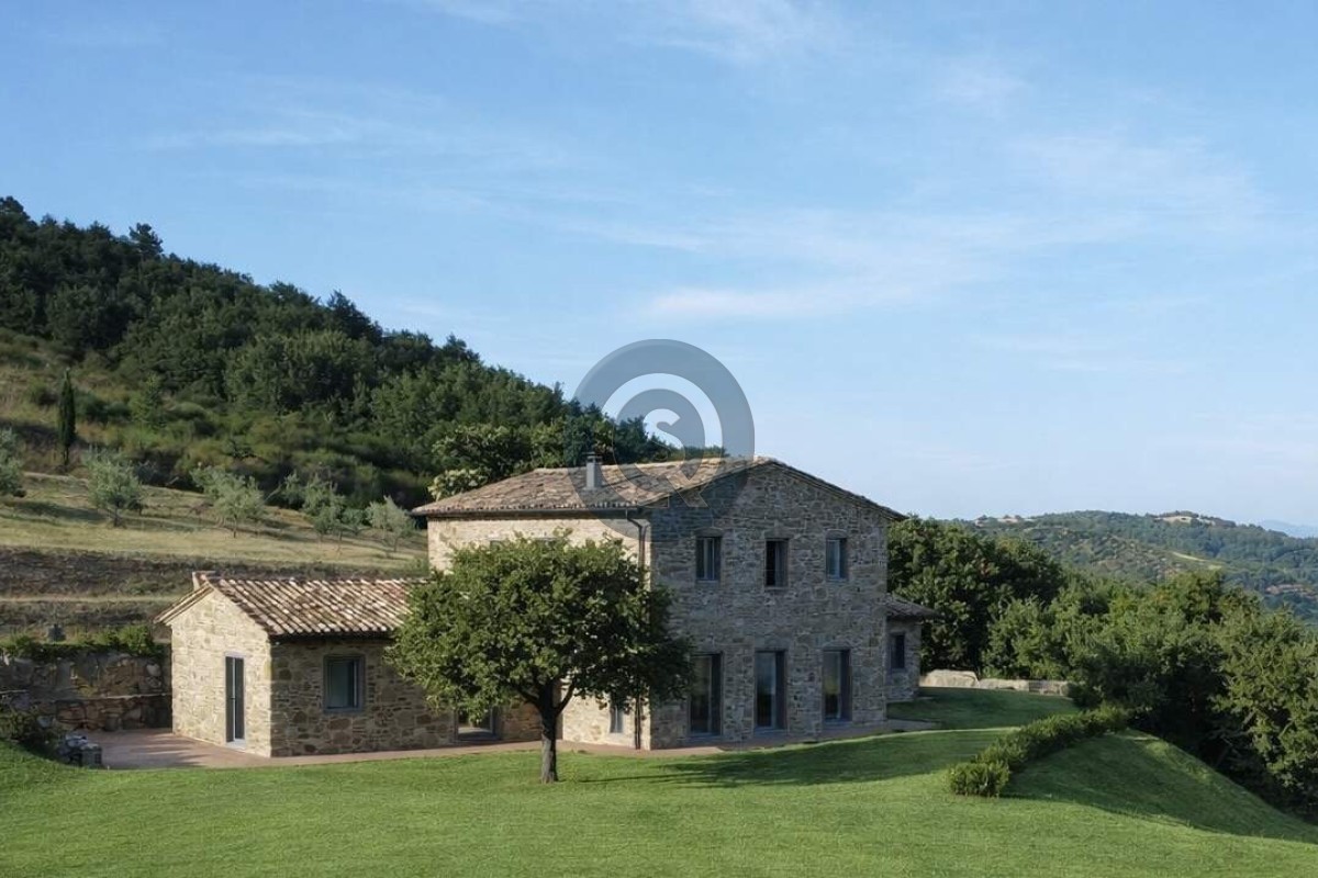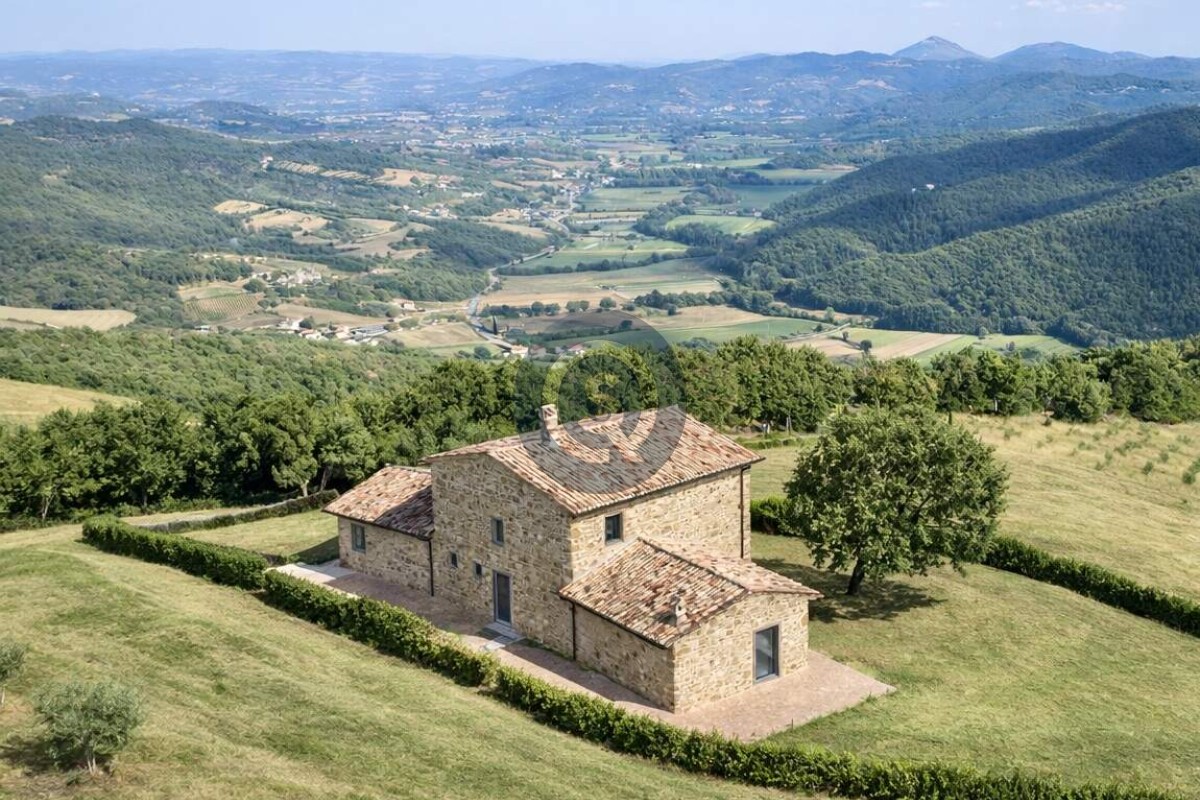 Perched atop a hill overlooking the picturesque Nestore Valley, this exceptional stone farmhouse offers a rare combination of refined elegance, contemporary comfort, and absolute privacy. Surrounded by unspoiled nature and panoramic landscapes, the property enjoys a truly privileged position at 550 meters above sea level, providing sweeping views across the rolling Umbrian countryside.